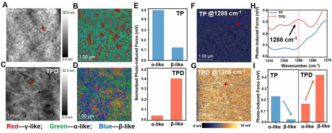 Figure 2. Infrared Photoinduced Force Microscopy (IR-PiFM) characterization of interface-enhanced polar and non-polar conformations