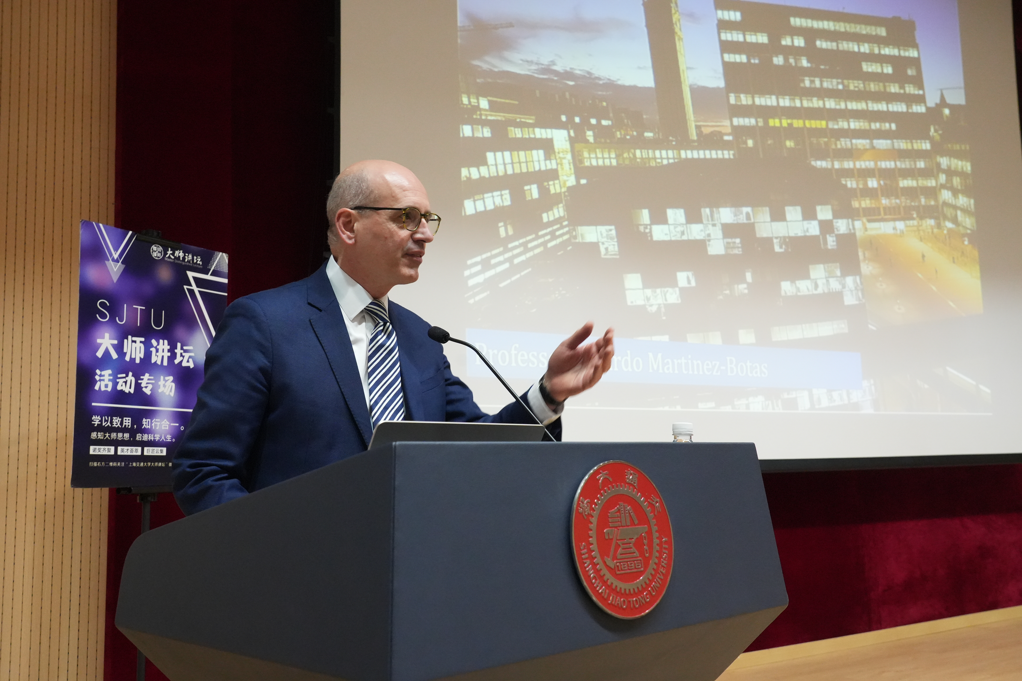 On April 1, Ricardo F. Martinez-Botas, Fellow of the Royal Academy of Engineering, Associate Dean(Partnerships), Faculty of Engineering, Imperial College, was invited to visit Shanghai Jiao Tong University and presented the theme “How did I get here? A journey in academia for the benefit of society and what about net zero?” as the guest speaker of the 211th Master Distinguished Lecture. Professor Zhaohui Du and Professor Lei Zhu, Dean and Vice Dean of the School of Mechanical Engineering, and more than 100 audiences attended the Lecture. The event was organized by the Graduate School of Shanghai Jiao Tong University and co-organized by the School of Mechanical Engineering.