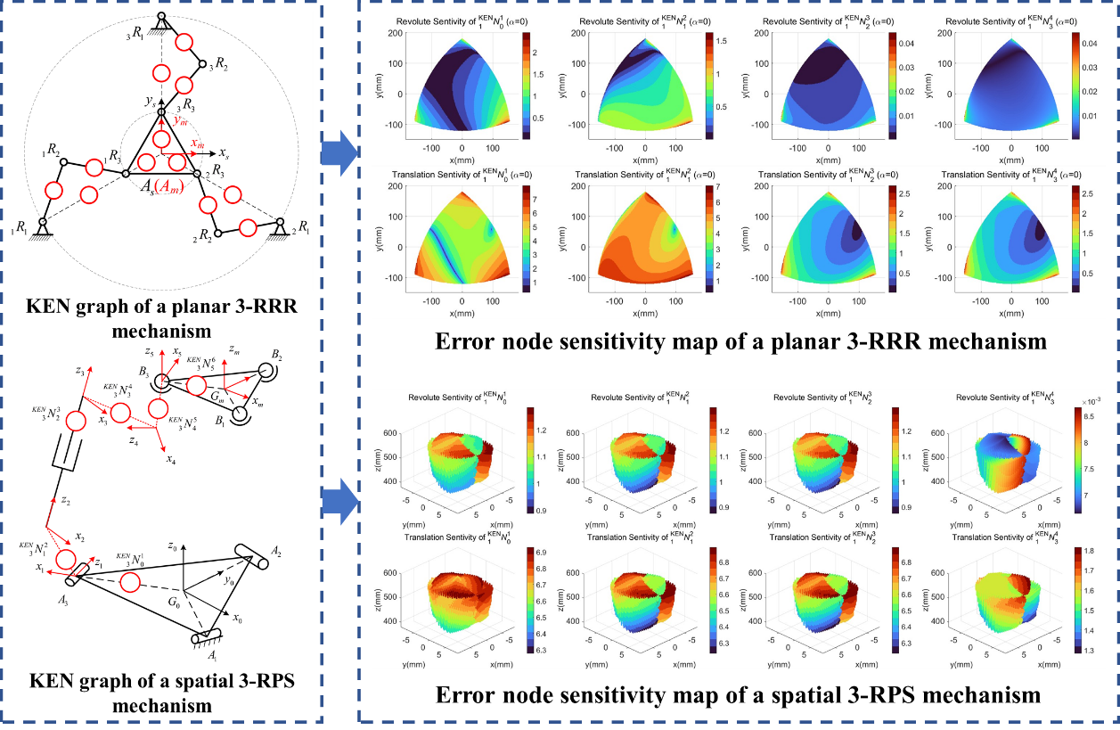 In terms of error modeling methodology, the team was the first to propose the concept of the Kinematic Error Node (KEN), treating it as the fundamental unit for mechanism error analysis. By utilizing the KEN model, the approach decouples the physical sources from the kinematic modeling framework. Based on this, the team developed a unified, general, and complete recursive error modeling method, providing a comprehensive and universal framework for precision analysis of mechanisms.