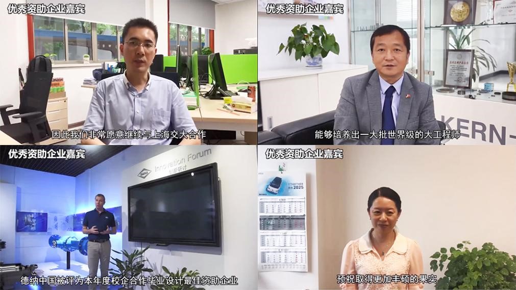 自公司2017年首次全面开展校企合作毕业设计以来,有近200家企业对毕设项目进行了资助,本届项目展首次在这些资助企业中评选“优秀资助企业奖”。上汽大众、DANA、KERN-LIEBERS、上海电气4家企业获此荣誉。获奖企业嘉宾也为此次项目展送上“云上祝福”。