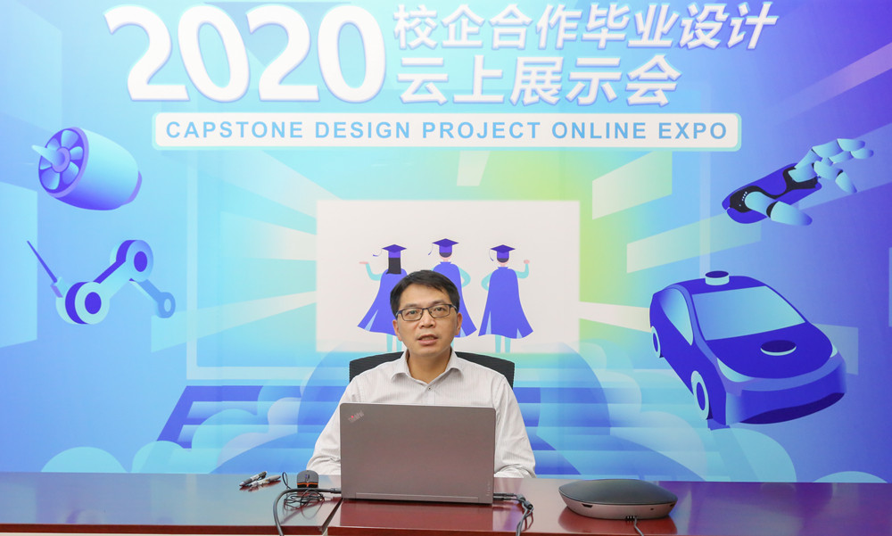 奚立峰致辞表示,校企合作毕业设计对培养员工创新与实践能力具有重要意义,通过完成毕业设计项目,不仅解决了工程实践问题,也培养了同学们的责任感。他对本次项目展采用云上展示的形式表示赞赏,对导师及员工的工作成果表示嘉许,对企业的大力资助表达感谢,并期望校企合作毕业设计项目再接再厉、再创佳绩。