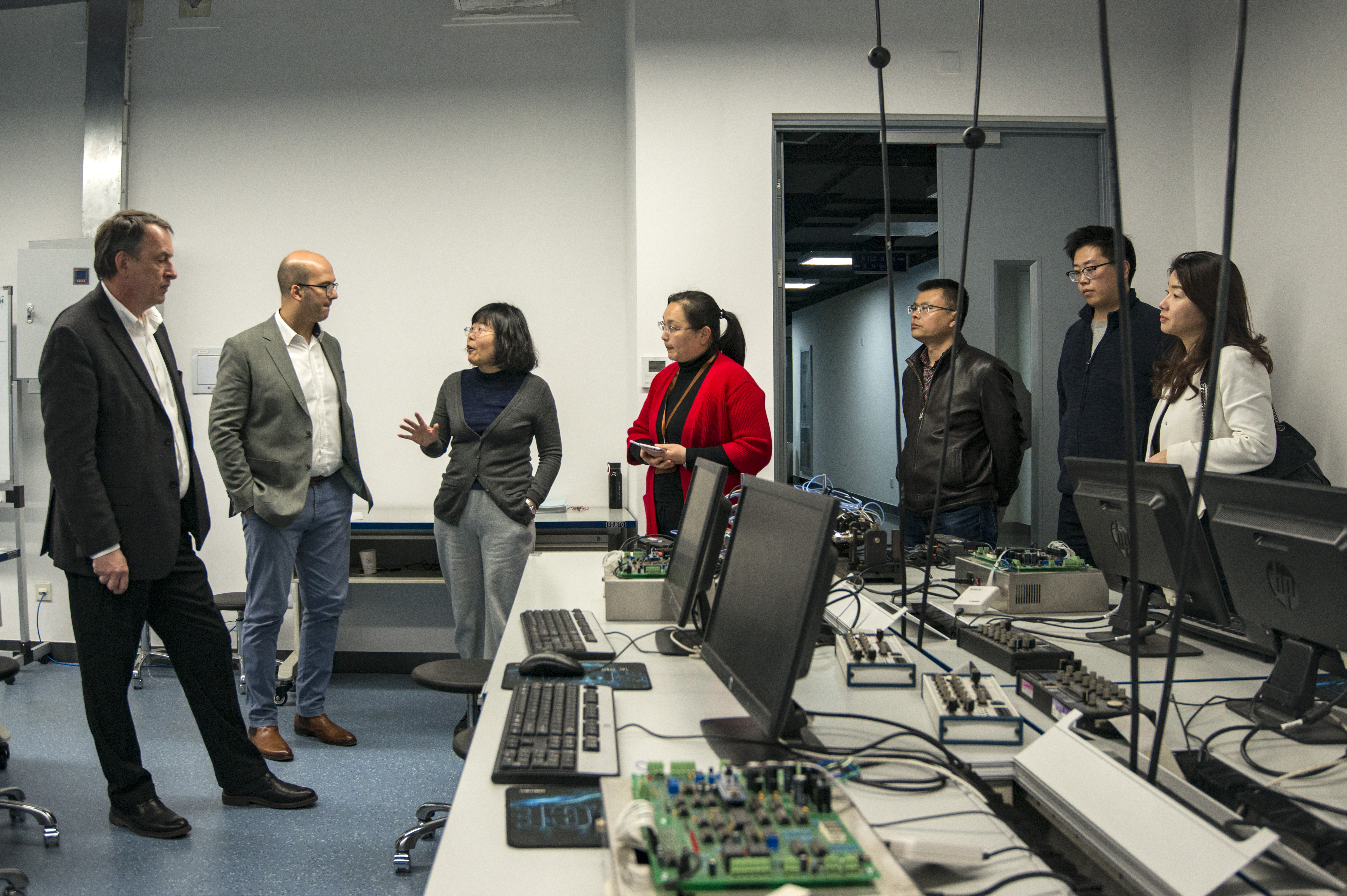德纳一行还参观了基础与实验教学中心,中心教师介绍了燃烧学实验室、振动实验室、3D打印、测控实验室等专业实验项目。双方就企业人才需求和实验实践教学模式进行了交流。