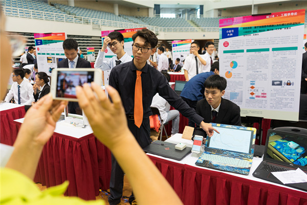 神奇的盒子能治愈人们的坏情绪,私人物品背后贴贴片就可智能报警防盗、湖面扫地机器人轻松搞定水上漂浮垃圾……体育馆内,同学们热情洋溢地讲解自己组的项目,小心翼翼地调试实物模型。评委们在一个个展位前停留驻足,与同学询问交谈,不时惊叹于同学们充满创意、源于生活的设计。