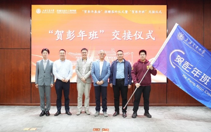 F2002017“贺彭年班”班长梁珈玮从班级建设、风采展示、毕业去向等方面介绍了同学们四年来取得的成绩。机动2308“贺彭年班”班长龚昱瑾回顾了班级一年来组织的集体活动和取得的成绩,希望四年之后交出满意的答卷。贺平、贺庆共同将“贺彭年班”班级旗帜从F2002017班交接到机动2308班手中,寓意传承精神、取得新突破。