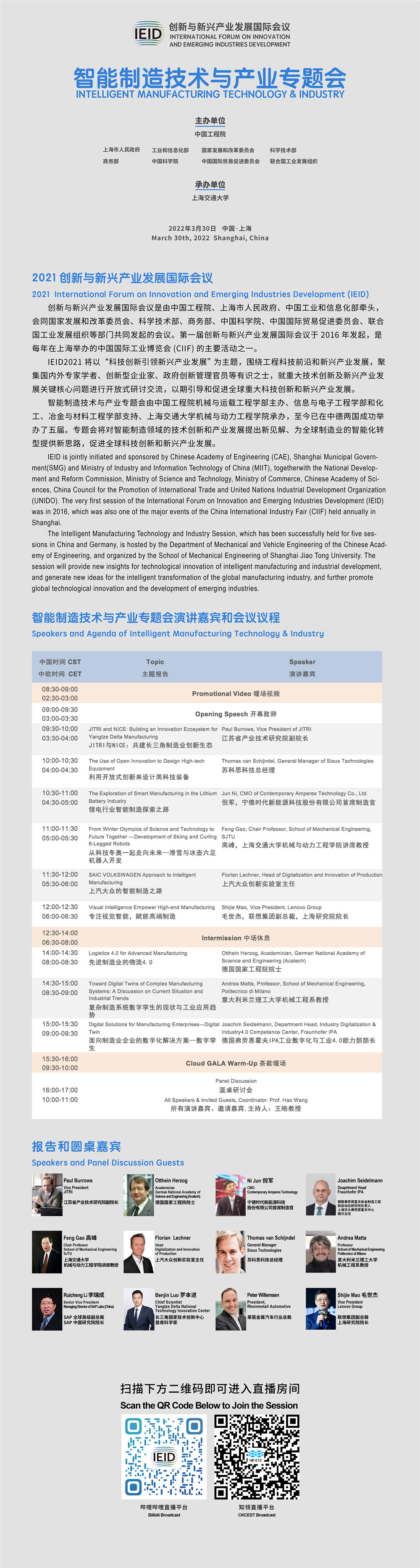 创新与新兴产业发展国际会议——智能制造技术与产业专题会