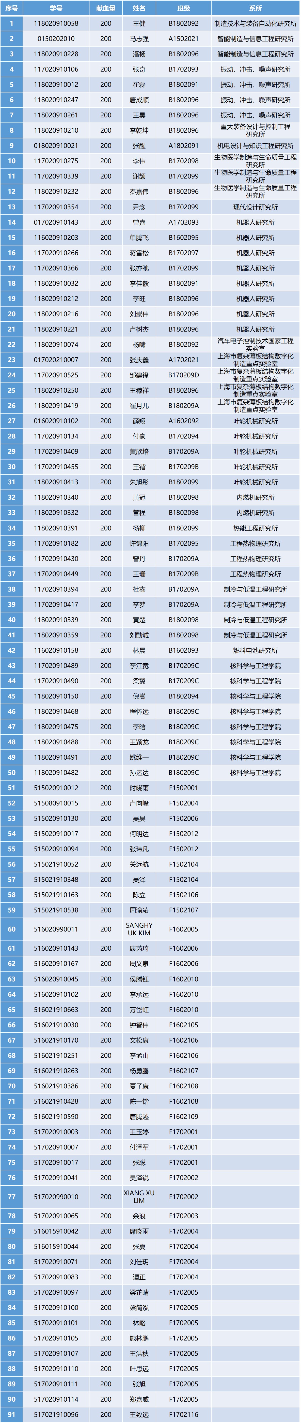 献血名单如下: