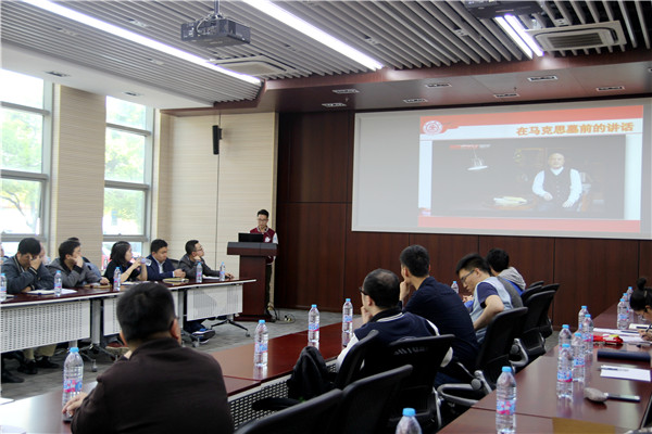 首先,程新毓简要介绍了马克思光辉的一生,包括揭示了社会发展的一般规律、引领世界无产阶级的思想运动以及做出的开创性贡献。随后他播放了一段对恩格斯《在马克思墓前的讲话》的解读视频,使各位党员能更深刻的感受到马克思对无产阶级的伟大贡献。在纪念《共产党宣言》170周年环节中,程新毓介绍了《共产党宣言》对我国无产阶级革命先驱重要的思想引导作用。如今《共产党宣言》已经成为世界发行量最大的政治书籍,是世界无产阶级革命运动的理论依据。在学习贯彻“两会”精神环节,程新毓详细介绍了供给侧结构改革和创新型国家战略,并分享了科技部部长万钢对创兴驱动发展战略的解读。