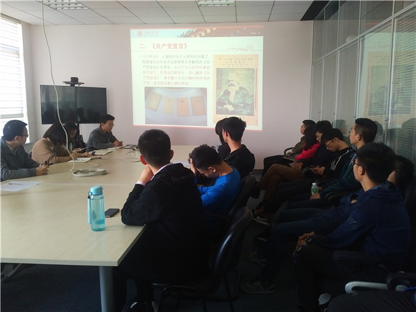 尹导指出,2018年是一个特殊的年份,它是马克思诞辰200周年,是马克思、恩格斯撰写的《共产党宣言》发表170周年,也是我国改革开放40周年。大家集体回顾了马克思的生平,学习了《共产党宣言》及其在中国的发展等内容。《共产党宣言》第一次全面系统地阐述了科学社会主义理论,是中国共产党人信仰的起点,中国特色社会主义理论体系是马克思主义的发展的和继承。