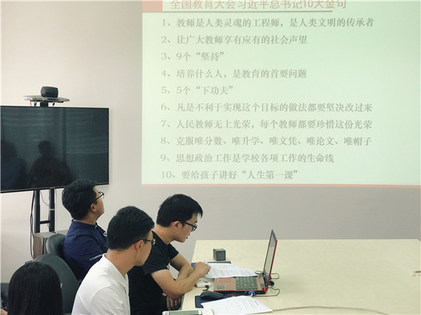 首先,杨珂带领与会同志学习习近平总书记在全国教育大会上的重要讲话,向大家解读了大会上习近平总书记的10大金句。习近平总书记从党和国家事业发展全局的战略高度,系统总结了我国教育事业发展的成就与经验,深刻分析了教育工作面临的新形势新任务,对加快推进教育现代化、建设教育强国、办好人民满意的教育作出全面部署。杨珂还分享了自己参加公司2018年“教书育人奖”表彰大会的感受,向扎根教育第一线的老师们致以崇高敬意。
