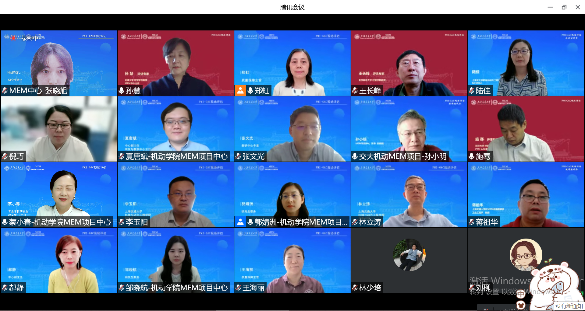 线上认证评估专家组由天津大学MEM项目中心主任、管理公司教授孙慧,同济大学经济与管理公司党委书记、PMI-GAC 董事会成员施骞教授,北京邮电大学经济与管理公司王长峰教授组成,PMI-GAC中国项目教育中心(CPEC)主席、GAC中国区前董事林少培教授应邀出席。上海交大机械动力公司党委书记林立涛、副经理李玉阳,工业工程与管理系教授蒋祖华等参加了会议。