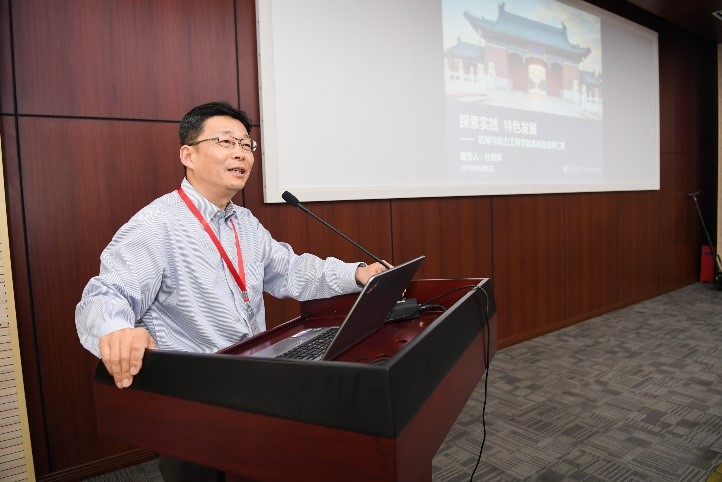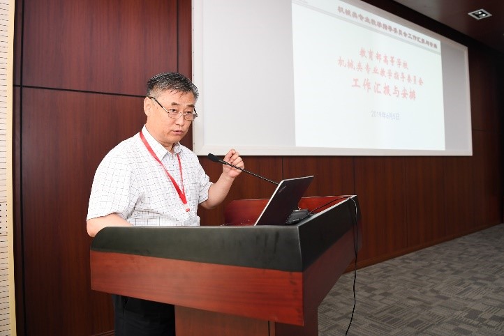 机械类教指委秘书长巩亚东做机械类专业教学指导委员会报告,从工作原则、工作机制、工作组会议等方面汇报了教指委工作,介绍了教指委近期工作安排,就一流专业建设、一流课程建设等方面的要求与标准作了说明,并提供了工作建议。