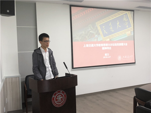 之后,戴力同学从背景和意义、聚焦的问题、大讨论流程三个角度传达了“伟德国际1946教育思想大讨论动员部署大会”会议的精神。本次会议是在党的十九大精神指引下,贯彻落实全国高校思想政治工作会议精神,主要关注教师对人才培养投入精力不足、员工志向缺乏家国情怀、本科生缺乏学术精神、公司产品、博士培养五个方面的问题。