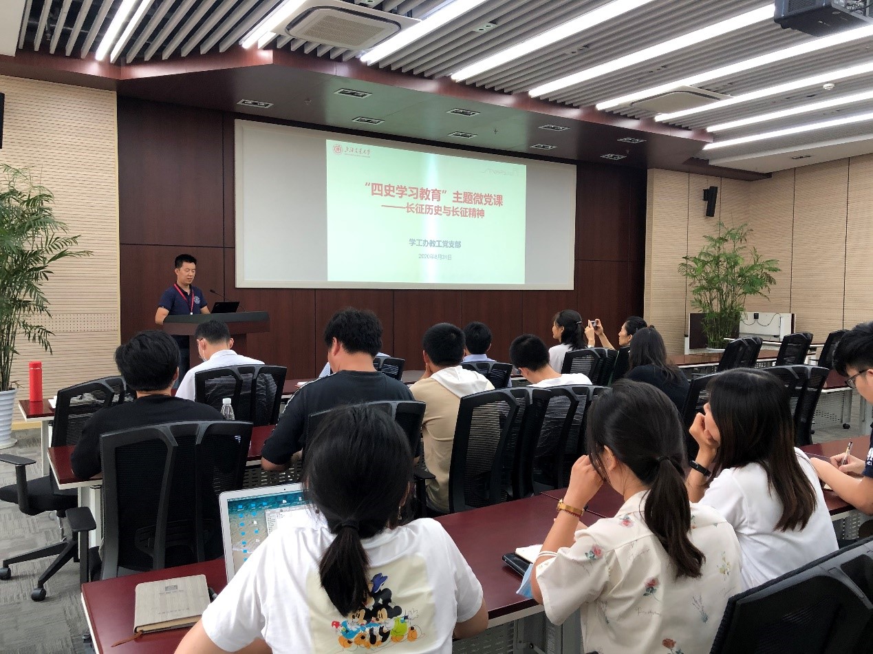 8月31日,伟德国际1946学工办教工党支部组织开展“四史”学习教育主题微党课,党支部书记梁茂宗讲微党课,公司经理兼党委副书记彭志科列席指导。