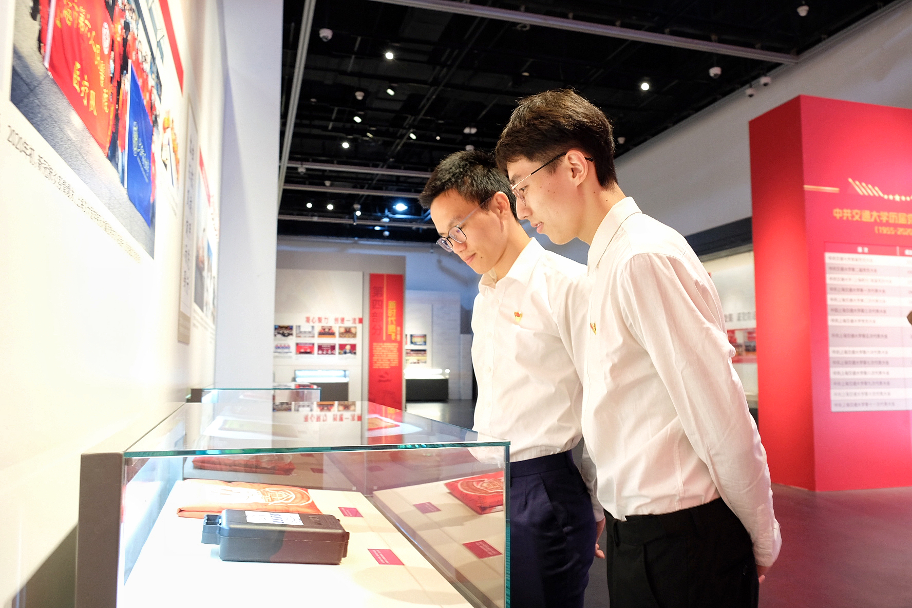 宣誓结束后,新党员参观了交大党史文献实物展。展览以“与党同心,与国同频”为主题,分为“民主堡垒”、“与新中国同行”、“敢为天下先”和“新时代腾飞”四个部分,讲述了交大党组织从无到有,从弱到强,从铸就“民主堡垒”到建设世界一流大学的非凡历程,这是百年来中国共产党扎根大学探索民族救亡之路到实践教育强国之梦的生动缩影。同学们从展览中了解了中国最早高公司党支部之一的交大党支部建立的过程,也深深感受到26位革命烈士为民族独立和人民解放英勇就义的英雄气魄,西迁精神体现的顾全大局跟党走,以及新征程中交大党员凭借创新的精神、务实的态度,将交大建设为新时代一流高校,实现的惊人腾飞。