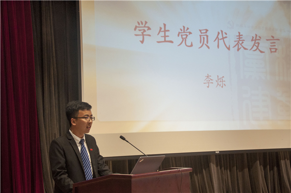 2015级工业工程专业硕士研究生李烁代表毕业生党员发言。他回顾在交大求学期间的点点滴滴,通过参与运载火箭质量一致性研究项目,更加理解科研的意义不仅仅是实现自我,更是践行对国家和社会的责任。作为一名来自祖国西部的学子,他选择了中航工业618所就业,回到西部实现自己航空报国的梦想。