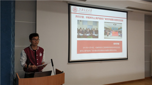 叶轮所研究生党支部书记程新毓介绍了所在支部开展2017年员工党支部“共行计划”项目的情况,分享了支部与上海汽轮机厂设计联合党支部开展共建共行活动的经验和感悟。