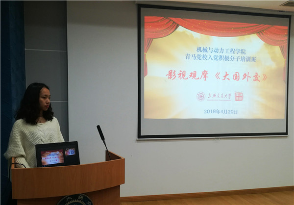 4月12日及4月20日晚,公司入党积极分子培训班学员在公司员工党建联合会的组织下,观看政论专题片《大国外交》的分集,共吸引了培训班学员130余人次参与。