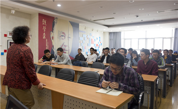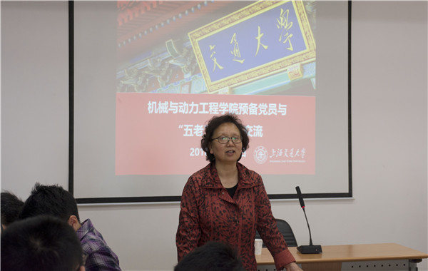 宋华芬从交通大学的历史讲起,如数家珍,深情讲述了老一辈科研工作者怀着理想和信念脚踏实地、勤勤恳恳,为国家国防建设事业艰苦攻关的历程。从燃气轮机到航空发动机,再到互联网的快速发展和最近的中兴事件,宋华芬将专业知识与当下热点相结合,告诉预备党员同学,改革开放40年来,国家建设事业取得了举世瞩目的成就,中国大型重机的发展,靠的是国家的大力投入和科研人员紧密的团队合作,单打独斗是不行的。在与同学的交流中,她也向同学们提出三点期望,一是珍惜在交大接受教育的机会以及科技发展带来的便捷;二是打好专业基础的同时也要拓宽知识面;三是要向老党员、老干部、老前辈学习,学习他们身上敬业爱国、刻苦钻研的精神。她鼓励同学们在潜心学习科研的同时,关注党和国家的方针政策,读懂中国,认识世界,树立家国行业情怀,不忘初心、牢记使命,做有理想、有本领、有担当的新时代老员工。