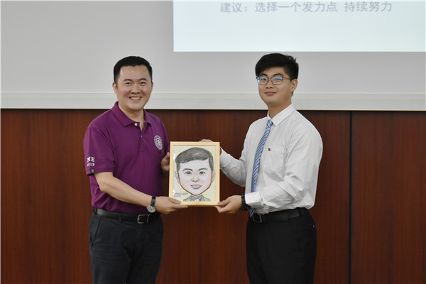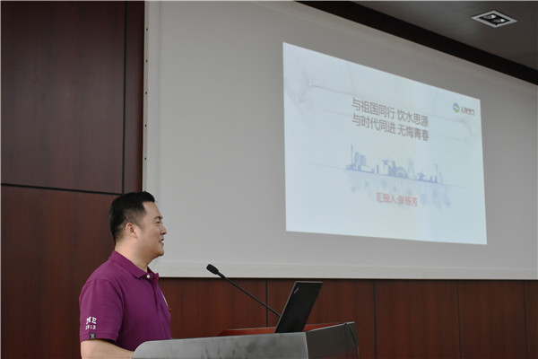 张栋芳以“与祖国同行,饮水思源;与时代同进,无悔青春”为主题,为毕业生党员分享2005年毕业后从一名普通员工成长为燃气轮机设计技术骨干的故事,从初入职场感悟到的责任使命,点滴积累获得逐步成功,站在更广的角度看燃气轮机,比较系统深入地研究燃气轮机,到如今技术团队不断完善、壮大,十余年来扎根上海电气的奋斗历程和成长感悟。他解读燃气轮机技术的发展历史和面临的技术瓶颈,他说,我们国家已经是制造业大国,但还不是制造业强国,因此交大学子大有可为。他勉励毕业生党员脚踏实地,在择业时敢于对接国家重大战略需求,选择一个发力点,持续努力,未来成长为国家栋梁。毕业生党员为张栋芳送上了精心准备的纪念礼物。