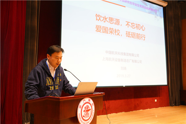 3月27日下午,伟德国际1946“思源致远 扬帆远航”2019届研究生毕业生党员远航教育大会在高田会堂举行。校工作党委书记刘宇空在致辞中对同学们圆满完成学业表示祝贺,同时对毕业生党员提出三点希望:善于担当,积极做习近平新时代中国特色社会主义思想的坚定信仰者和积极实践者;善于学习,永无止境;善于奉献,永不停步,做中华民族伟大复兴的建设者和见证者。公司党委书记、经理杜朝辉以“不忘初心,坚定信念,努力奋斗”为主题,为毕业生上了一堂生动的党课。他对毕业生党员同学提出三点希望:树立崇高的理想和志向,胸怀祖国,放眼世界;脚踏实地,认真学好本领;牢记党员责任和使命,时刻起模范带头作用。他勉励毕业生党员同学不断努力,以聪明才智和勤奋努力为中国科学技术发展做出自己的贡献,为国家实现“两个一百年”伟大梦想而奋斗。2013届博士员工、上海航天设备制造总厂有限公司数控分厂副厂长刘晓以“饮水思源,不忘初心,爱国荣校,砥砺前行”为主题,为毕业生党员分享自己在交大求学及企业工作中的经历感悟。他勉励毕业生党员坚定信念,不忘初心,脚踏实地,敢于担当,善于作为,在择业时应当响应国家重大战略需求,在工作中应当保持激情和活力,努力成长为国家栋梁。
