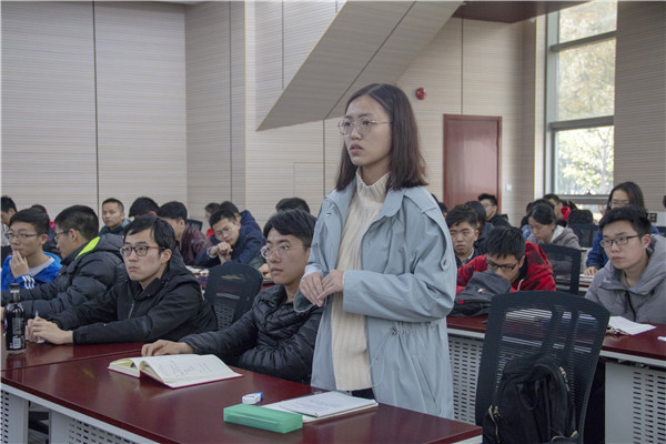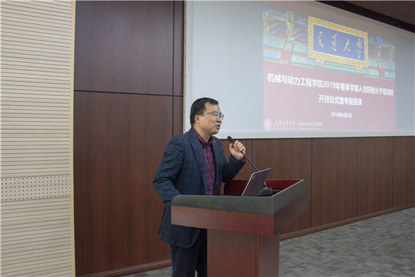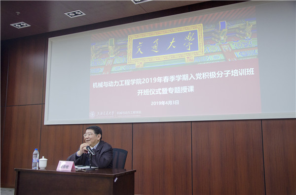 陶燕敏还讲述了许多优秀共产党员的故事和他们的人生理想,如抗战时期成为中共地下党员,留学归国后又参加中国人民志愿军,最后为国内传热学教学奠定基础的杨世铭;一生为祖国造船事业奉献,79岁高龄不忘初心如愿入党的杨槱院士。他用这些故事告诉同学们, 每个人都有自己的政治追求,希望同学们明晰自己的初心,找到自己的信仰,并坚守信念。他要求同学们认真学习党章,对自己高标准严要求,要时刻做好接受组织严格考察的思想准备。他勉励同学们坚定地相信党,跟党走,始终追随我们的党。