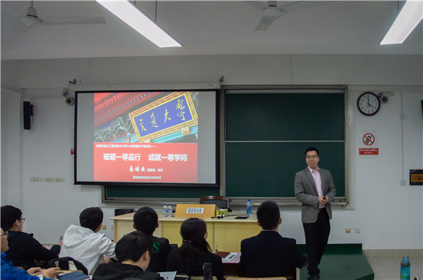 易培云首先指出,作为交大学子,要砥砺一等品行。易培云向同学们展示了自己在大学时期的经历与获得的成绩。希望大家可以在大学时期艰苦奋斗,珍惜宝贵的学习机会。身为博士生导师,他结合自己带研究生的经历,指出了艰苦奋斗对科研的重大意义。身为新生班主任,易培云十分了解本科生的生活,他建议同学们别呆在寝室,要多走出寝室,这样才能保持旺盛的奋斗精神。易培云通过一个个的小故事,深入浅出地向积极分子传递着要珍惜学习机会,学会感恩社会的理念。他总结道:“知识改变命运;唯有艰苦奋斗,才能铸就成功;唯有感恩在内,方能谦卑于外。”在场同学十分专注,讲座深入人心。