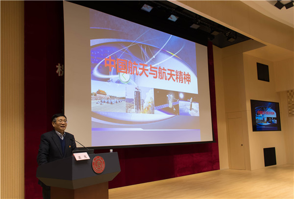 孟光以“中国航天与航天精神”为主题,从“为什么要搞‘两弹一星’”、“中国航天文化核心内容”、“航天‘三大精神’的精髓”以及“中国航天成功的原因”四个方面分享了他对中国航空航天精神的理解和感悟,同时也向同学们介绍了中国航天事业发展历程。