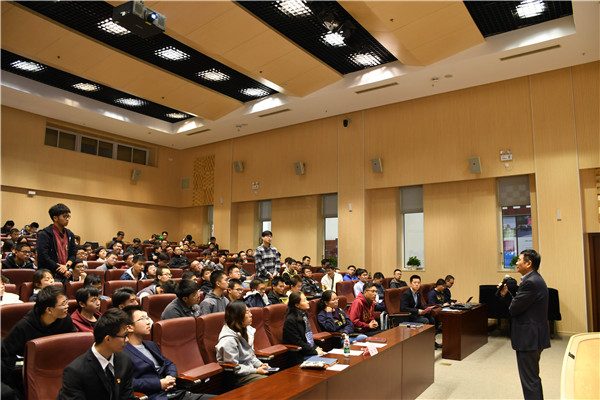 孟光首先带领同学们回顾了近现代史,让同学们对当年的时代背景有了一定的认识,在此基础上进一步讲解了中国发展航空航天的必要性。孟光讲道,二十世纪五十年代的世界已经进入了核时代,核威胁的阴影笼罩世界。面对紧张的世界局势,中国捍卫国家主权的需求分外强烈。因此,即使国家比较困难,领导人也下大决心搞两弹一星。他深情地说,两弹一星的成功捍卫了中国的大国地位。孟光向同学们介绍了以“两弹一星”为代表的中国航天发展过程中遇到的困难和取得的重大成就,极大鼓舞了同学们的爱国热情,让同学们充分认识到发展“两弹一星”必要性和排除万难的航天精神。