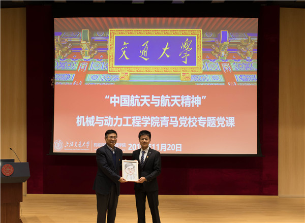 在精彩的专题授课结束后,孟光就同学们的疑问和同学们进行了交流,以一个资深航天人的身份回答了同学们的疑问。最后,员工党员代表徐浩向孟光老师赠送了小礼物。
