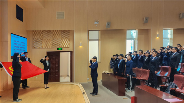 党课结束以后,举行了入党新党员宣誓仪式。2019年新发展入党的党员在党建联联合会副主席王斐然领誓下,对着党旗庄严宣誓。