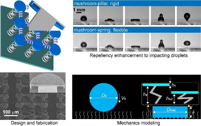 近日,公司彭志科教授课题组在Science Advances上发表题为“Liquid repellency enhancement through flexible microstructures”的论文,提出了蘑菇-弹簧构型柔性微纳表面结构,聚焦表面抗液防冰技术难题。公司博士后胡松涛和瑞士苏黎世联邦理工公司博士后曹小宝为共同第一作者,彭志科教授和史熙教授为共同通讯作者,英国帝国理工公司Daniele Dini教授团队和瑞士苏黎世联邦理工公司Andrew deMello教授团队、王京教授团队为论文合作单位。