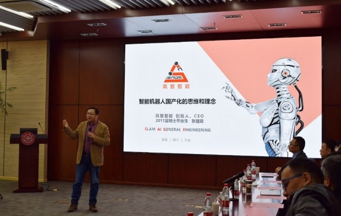12月17日,“创业创新路上的机构学与机器人”砺远学术讲坛举办,本期论坛邀请7位机器人创业公司博士员工,深入论述当前机器人与人工智能领域的产业发展需求,围绕智能机构设计、多模态感知、类脑控制、机器学习等学科前沿与热点领域展开讨论。公司党委副书记张文明、重大装备设计与控制工程研究所(以下简称“重大装备所”)所长高峰以及90余名师生参与了活动,活动由重大装备所何俊副教授主持。