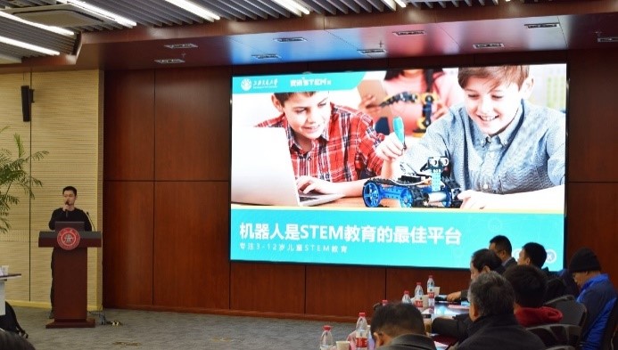 上海智槃智能科技有限公司创始人缪云洁博士以“机器人是实践STEM教育的最佳平台”为题,分享了求学经历和创业过程,强调了信仰的力量,列举了一系列教育机器人品牌,指出教育机器人的设计面临安全性高、成本高等挑战。他表示其创立的STEM教育,旨在培养员工批判思辨、创造创新、沟通交流、团队协作的能力,并就员工提出的“将学术成果产业化”问题,认为要从市场需求出发,定位产品的功能需求。