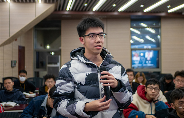 在答疑交流环节,同学们结合自身专业以及国家政策、社会热点提出问题,现场交流氛围浓厚。针对能源领域建设周期比较长、投资回报率不高、碳排放交易市场规模等问题,老师们一一为同学解答疑惑。