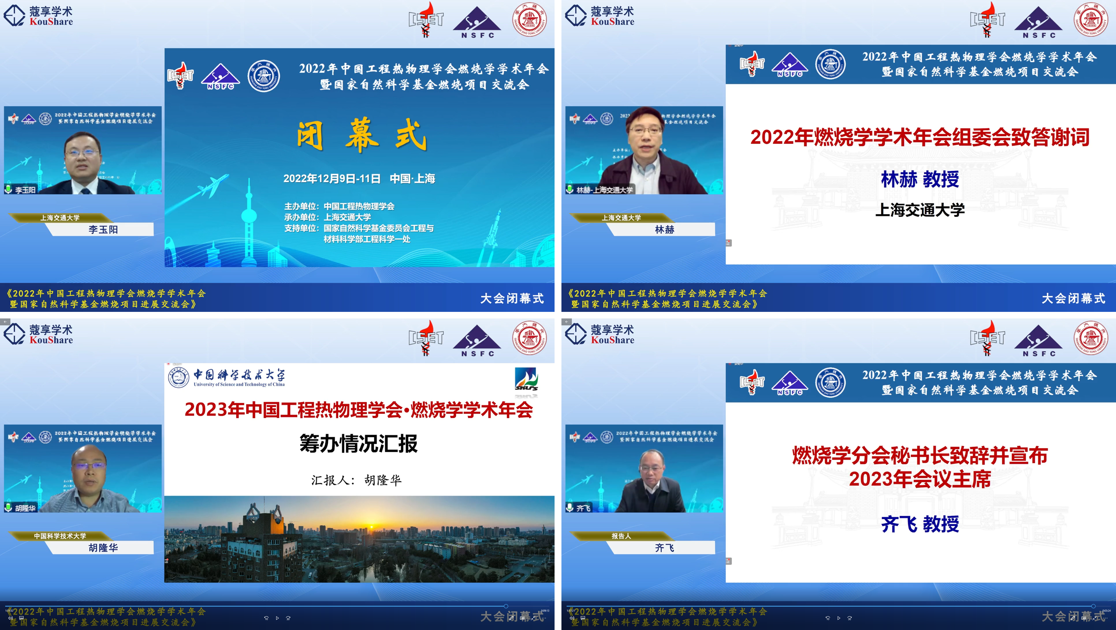 12月9日至11日,2022年中国工程热物理学会燃烧学学术年会暨国家自然科学基金燃烧项目交流会线上成功举办。大会由中国工程热物理学会主办,伟德国际1946承办,并得到了国家自然科学基金委员会工程与材料科学部工程科学一处的支持。来自全国百余所高校、研究机构和行业企业的代表参加了会议,在线总人数突破7万人。