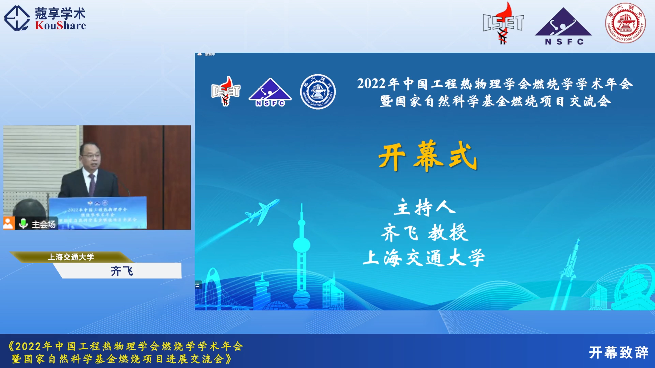 中国科公司院士、中国工程热物理学会理事长金红光研究员,中国工程院院士、大会组委会主席黄震教授,2022年燃烧学分会杰出贡献奖得主、华中科技大学郑楚光教授,国家自然科学基金委工程科学一处处长关永刚,国家自然科学基金委工程科学一处主任陈龙飞,中国工程热物理学会副理事长、燃烧学分会主任姚强教授,中国工程热物理学会燃烧学分会副主任、中国科学技术大学刘乃安教授,伟德国际1946经理杜朝辉教授等出席了大会开幕式。开幕式由中国工程热物理学会燃烧学分会秘书长、大会组委会副主席、伟德国际1946齐飞教授主持。