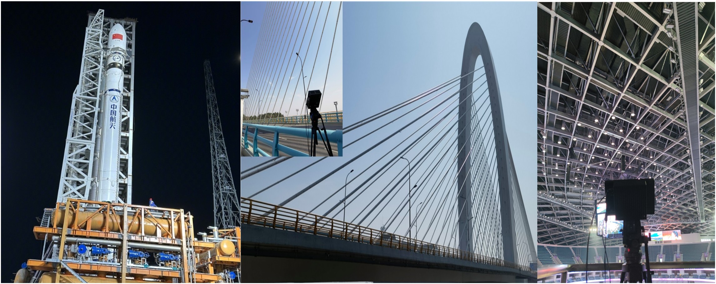 项目围绕航空航天等国防装备和桥梁建筑等大型工程全天候全场振动测量需求,针对极端环境超大尺度结构全局力学精密感测科学挑战,提出了大型结构全天候全场微波测振新思路与新路径。项目在“大型结构全场振动及形变微波测量机理与技术”“结构全场高分辨、跨尺度、三维位移微波精密感测技术与方法”“复杂环境与工况测量误差的溯源、分析与控制技术”方面取得创新性发明突破,研制了国际首套大型结构全场振动及形变微波测量仪器装备,测量精度达到1μm量级,测量距离达150m,形成了具有完全自主知识产权的大型结构全天候全场微波测振技术与装备。研究成果填补了微波全场振动测量技术空白,广泛应用于航空航天、桥梁建筑、电力等领域重大装备及大型结构的力学测试。