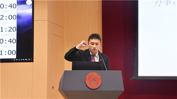 随后,机动科协的郭尚洋为大家讲解了本次比赛的赛题及比赛规则。紧接着,裁判团代表千坤上台,带领台下裁判团成员进行公平裁判的宣誓。宣誓完毕,主持人宣布后,比赛正式开始。