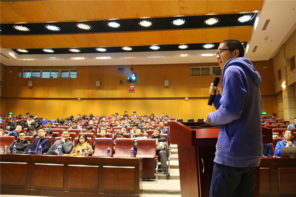 接下来是经验分享环节。首先由经验丰富、曾获院赛亚军的2016级机械与动力公司员工梁帅积极热情而又有条理地给在座同学分享了自己的参赛经验。梁帅同学将机械赛的境界分为五个纬度,从技术层、管理层、艺术层、历史层、世界观层几个层面,条理清晰地将自己的经验娓娓道来。而后曾获校赛冠军的孙愈亮同学上台,从机械传动、电源、电机、电路、主控、通信等更为细致且偏向技术的角度,幽默大方地与同学们分享了自己的比赛心得。两位学长展现了自己的风采,给了同学许多建议和帮助。
