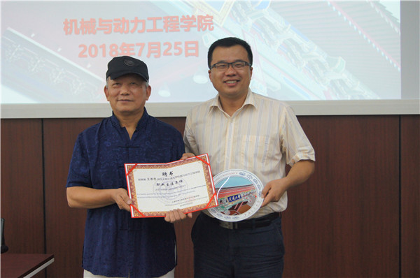 上午的主题报告邀请到苏州东菱振动试验仪器有限公司董事长、总裁王孝忠先生。王孝忠董事长从一个长者的角度,分享了自己的人生经历、创业历程和感悟思考。他表示,科学无国界,无需过度崇拜西方科学,中国人也可以做好科研;他勉励同学们要务实、要严谨、要坚定不移地对待科研,轻装上阵、从零开始、脚踏实地地对待科学事业。在交流环节,主持人和同学们先后提出了产品效益与技术创新的关系、知识产权的作用与保护以及工科毕业生就业需求等问题,王孝忠董事长分别进行了耐心详细的回答,在场同学表示收获颇丰。最后,王孝忠董事长受聘担任机械动力公司“职业生涯导师”,党委副书记顾希垚老师赠送纪念品。