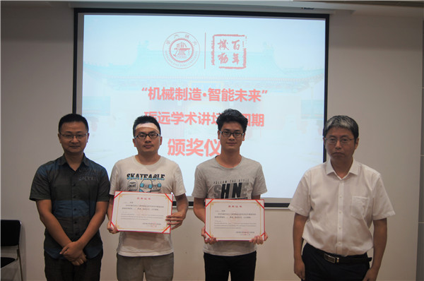 最终,经评审委员会打分,评选出论坛的各类奖项。来自振动所的李汶柏荣获一等奖,振动所的温斌荣、周凯荣获二等奖,机器人所的杨兴晨、李琳琳和生命质量所的倪培远荣获三等奖。评审专家为获奖同学颁发证书并合影留念。