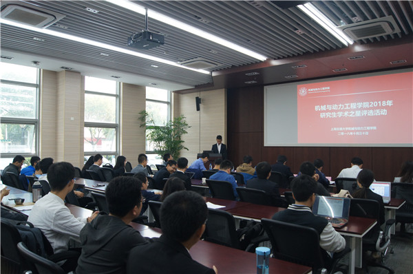 评选分动力和机械两大方向上下半场,13位候选人按抽签顺序依次上台答辩,向在场师生展示自己的科研成果。各位候选人的答辩内容引起了大家的强烈兴趣,赢得了阵阵掌声,也为在场研究生提供了宝贵的科研经验。评委老师就答辩者的研究课题进行点评和提问。