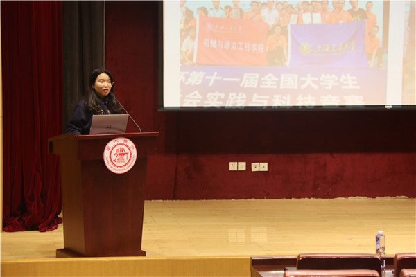 戴雨吟首先为大家介绍了竞赛的主题“节能减排与绿色能源”,接着给同学们讲解了竞赛的形式。她还向同学们介绍了材料的审查环节以及相关报名通知的公布渠道。