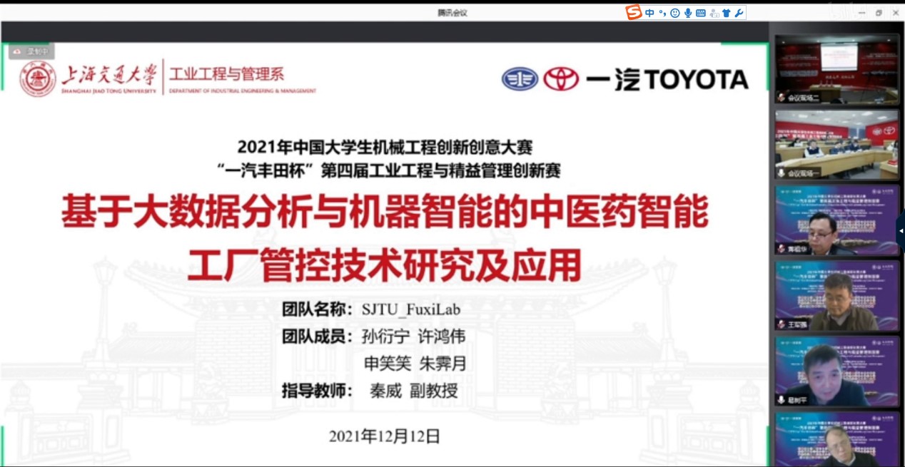 12月12日,2021年中国老员工机械工程创新大赛“一汽丰田杯”第四届工业工程与精益管理创新赛总决赛举行,公司工业工程与管理系研究生组斩获一等奖,本科生组斩获三等奖。