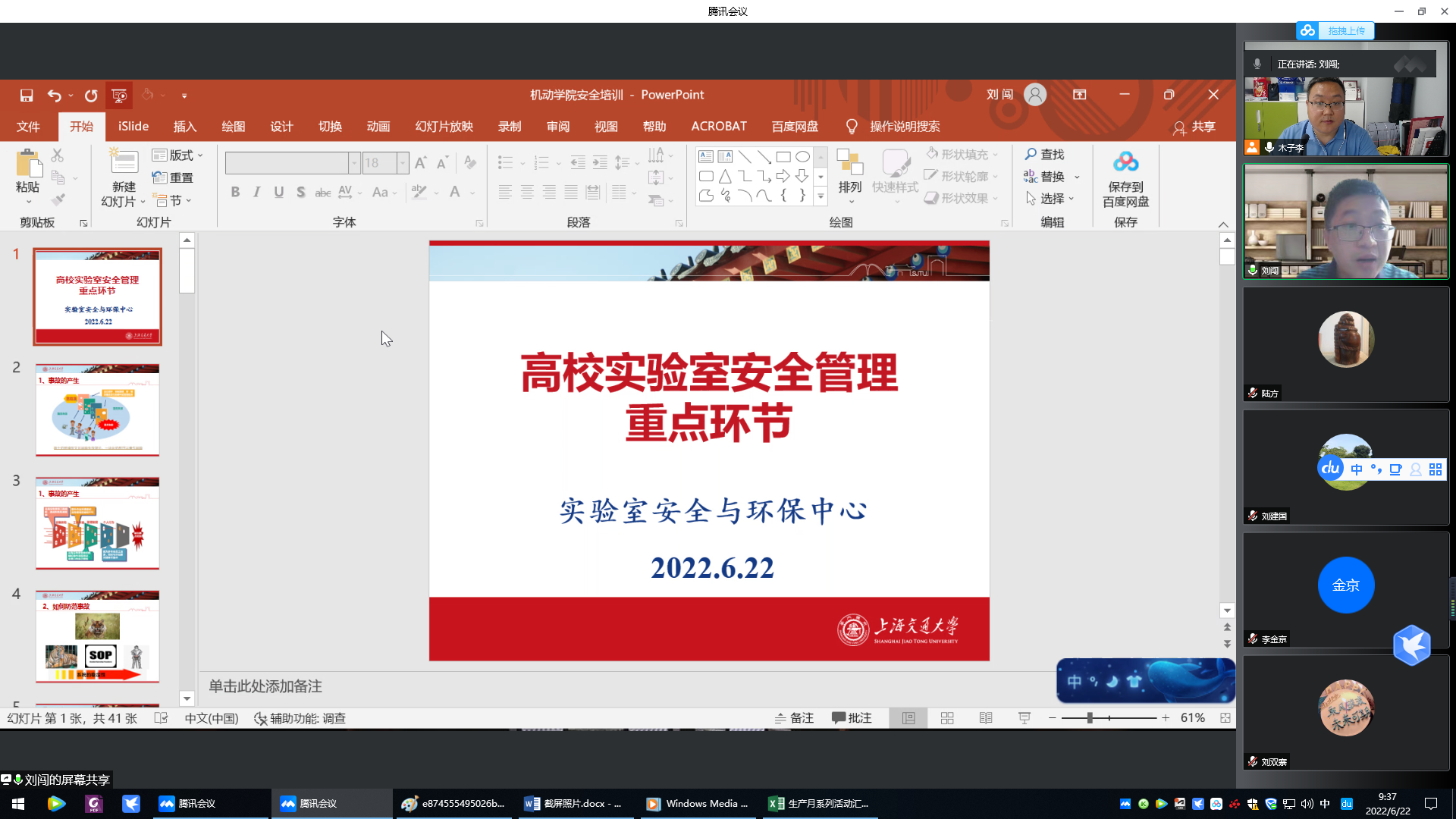 刘闯作《高校实验室安全管理重点环节》专题培训,主要从高校实验室特点、安全管理规律和原理、事故的产生原因分析、实验室危化品管理、实验室工艺安全分析等方面进行了讲解,并结合事故案例以及安全检查常见问题,解读了实验室安全管理中需要把握的重点环节。