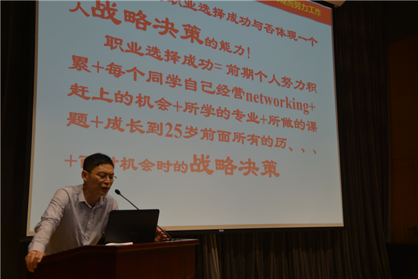 首先,阮海涛以“融入生活的激流”为主题回顾了近年来就业情况的变化趋势,结合公司的精神,对研究生前往国家重点单位就业做了动员,重点分析了第一份工作选择的战略方向应该结合哪些因素来确定的问题,列举了职业选择成功的典型案例。此外,他结合历年研究生求职过程中遇到的典型问题作了讲解,分析了员工生涯和职业生涯过渡期应该注意的问题。另外他还解读了一些创业方面的问题。