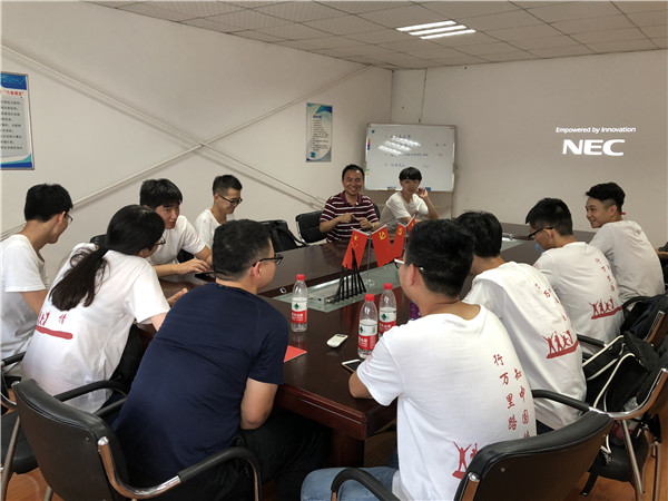 下午,在湖北员工会秘书长、机械动力公司84届员工左同兴学长的带领下,实践团一行人来到了武汉蓝辉机电设备有限公司参观走访。在座谈会中,左学长向大家介绍了公司的主要业务,涉及汽车行业、核电行业等非标准设备的设计、制造和服务,船舶与海洋工程设备控制系统的设计、开发和服务等,以及商业模式的创新,提供智能容器共享交换平台租赁服务。左学长寄语大家,作为一名交大人,要志存高远,将个人的理想追求与祖国的发展需求相结合,为国家的建设贡献自己的力量。