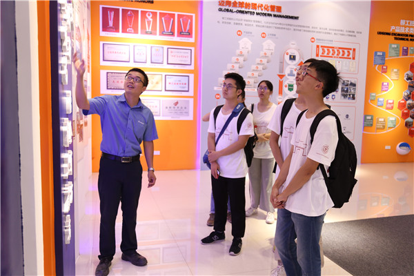 次日,实践团赴柳工全球研发中心进行参观。全球研发中心占地11万平方米,是印度、波兰、美国和英国以外柳工新的研发核心枢纽。实践团参观了柳工参与研发的干湿式驱动桥、高效率柴油机等产品,感受了柳工强大的研发实力。