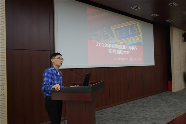 6月21日,伟德国际19462019年暑期就业引导实习实践启动大会在公司振华会议室召开。21个实践团全体成员近100人参加会议,会议由职业发展中心主任阮海涛主持。