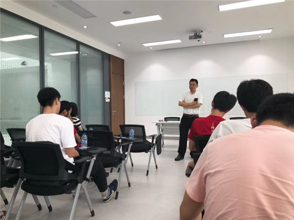 接下来,来自市场部的员工俞总向我们讲起了他的故事。1996年进入交大的他,和我们有着相似的经历,也有着相似的男女比。他以自己读书读到的“天下古今之庸人,皆以一懒字致败”入手,谈了行动上的“懒”、思想上的“懒”,进而告诫同学们要勤奋,勤于付出行动、勤于反思自己的问题,才能真正有所进步。他指出,公司所学的内容仍然有些窄,若要在企业中有所作为,还要不断地拓展知识面。在工科知识外,他建议同学们学习经济、管理学的知识。同时,他也希望同学们锻炼批判性思维,锻炼逻辑思维。从俞总的殷殷教诲中,同学们感受到了他严谨、进取的态度。